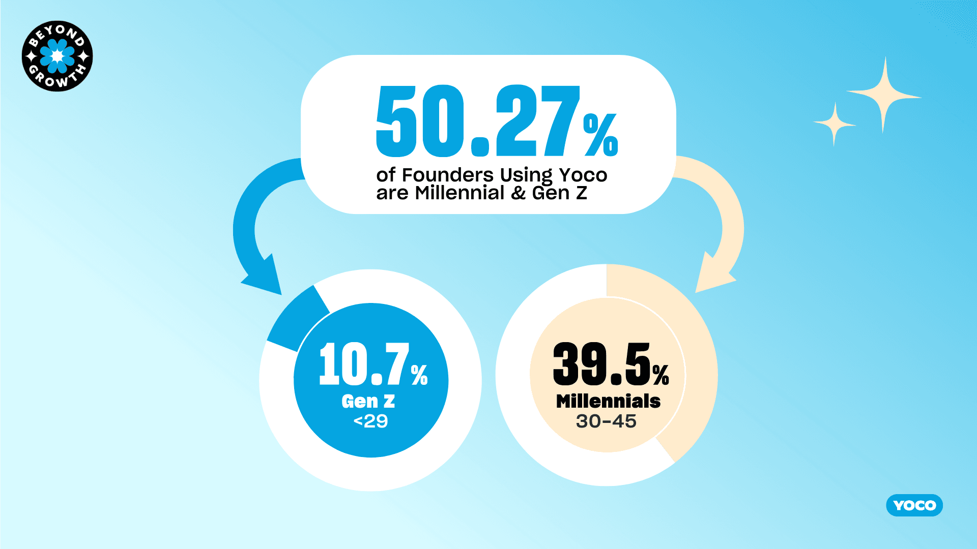 More than half of Yoco independent businesses are founded by the Gen Z and Millennial generations, with 10.7% belonging to Gen Z, and a further 39.5% being millennials.