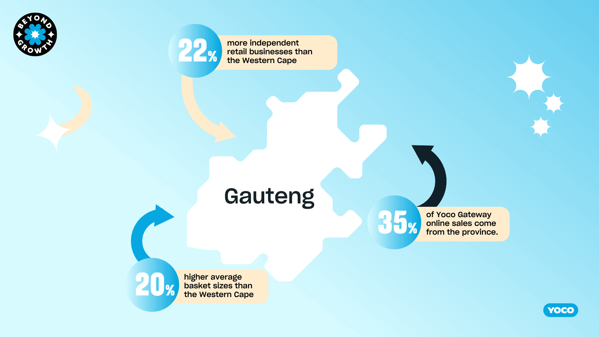 Retail remains another sector where founders are unlocking growth and the number of independent retail businesses working with us grew by 10% in 2025. Gauteng leads the country in retail performance, with 22% more retail merchants and 20% higher average basket sizes than in the Western Cape. The province also accounts for 35% of total Yoco Gateway online sales, which continues to grow as a key source of revenue for retail businesses.