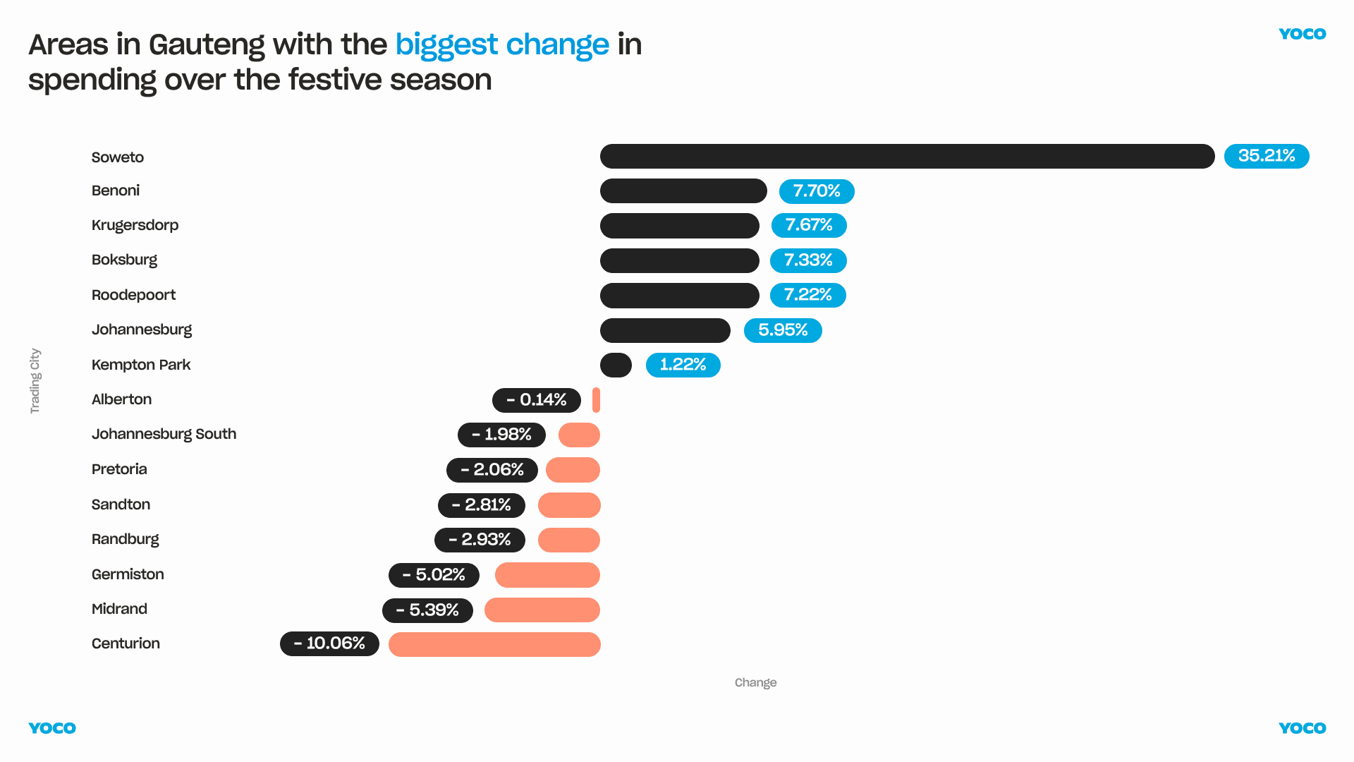However, Soweto stands out as the single largest contributor to local festive growth with a 35.2% increase in spending during the festive season.