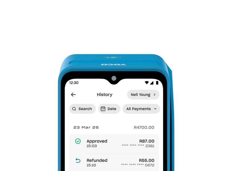 A maximum of 2 business days. And you’ll be able to see your entire sales history in the Yoco App on your device, along with so much more.