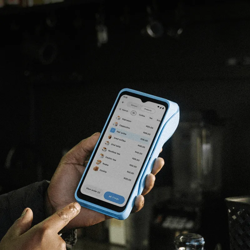 A complete point of sale and payments device in one, with a built-in printer. Combine it with Yoco Counter for table-side service.